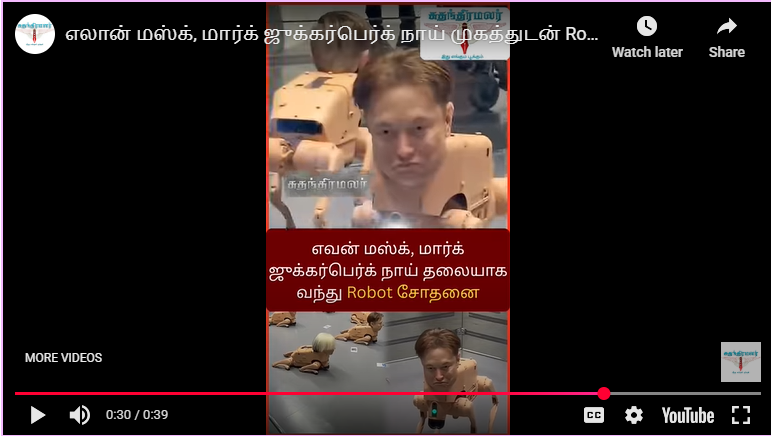 டெக் உலகை அதிரவைத்த சம்பவம்! எலான் மஸ்க் (Elon Musk) மற்றும் மார்க் ஜுக்கர்பெர்க் (Mark Zuckerberg) இருவரும் நாய் தலையுடன் (Dog Head) ரோபோட் (Robot) சோதனை. செயற்கை நுண்ணறிவு (AI) மற்றும் ரோபோட்டிக்ஸ் (Robotics) துறையில் அடுத்த கட்டம். Subscribe: Suthanthiramalar News Website: suthanthiramalar.com #எலான்மஸ்க் #மார்க்ஜுக்கர்பெர்க் #ரோபோட்சோதனை #டெக்நியூஸ் #செயற்கைநுண்ணறிவு #AI #Robot #ElonMusk #MarkZuckerberg #தொழில்நுட்பம் #சத்தியம்அலைமலர் #suthanthiramalarnews