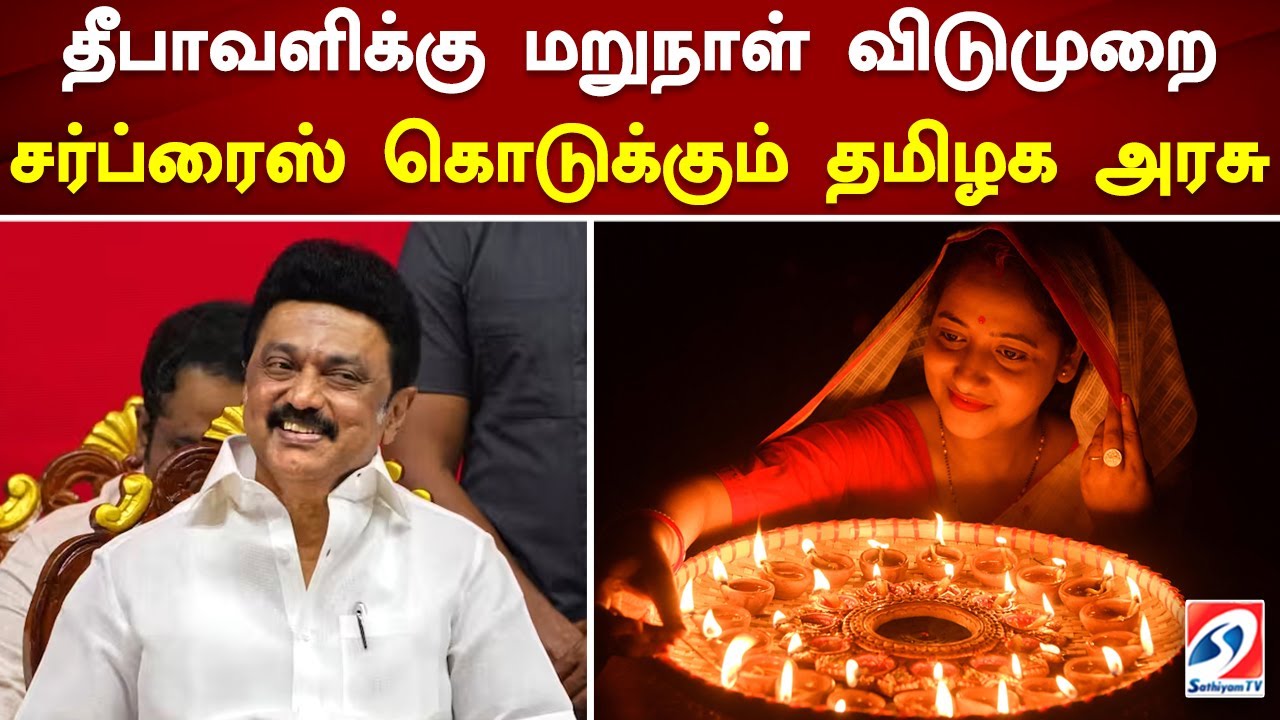 இந்நிலையில் தீபாவளிக்கு மறுநாள் விடுமுறை அளிக்கப்படுவதாக தமிழ்நாடு அரசு இன்று அறிவிப்பு வெளியிட்டுள்ளது. தீபாவளியை முன்னிட்டு தமிழ்நாடு முழுவதும் உள்ள அனைத்து அரசு அலுவலகங்கள், பள்ளிகள், கல்லூரிகள் மற்றும் கல்வி நிறுவனங்களுக்கு 01.11.2024 அன்று விடுமுறை அளிக்கப்படுவதாக தமிழ்நாடு அரசு அறிவித்துள்ளது. இந்த செய்து பொதுமக்களிடையே பெரும் மகிழ்ச்சியை ஏற்படுத்தி உள்ளது.